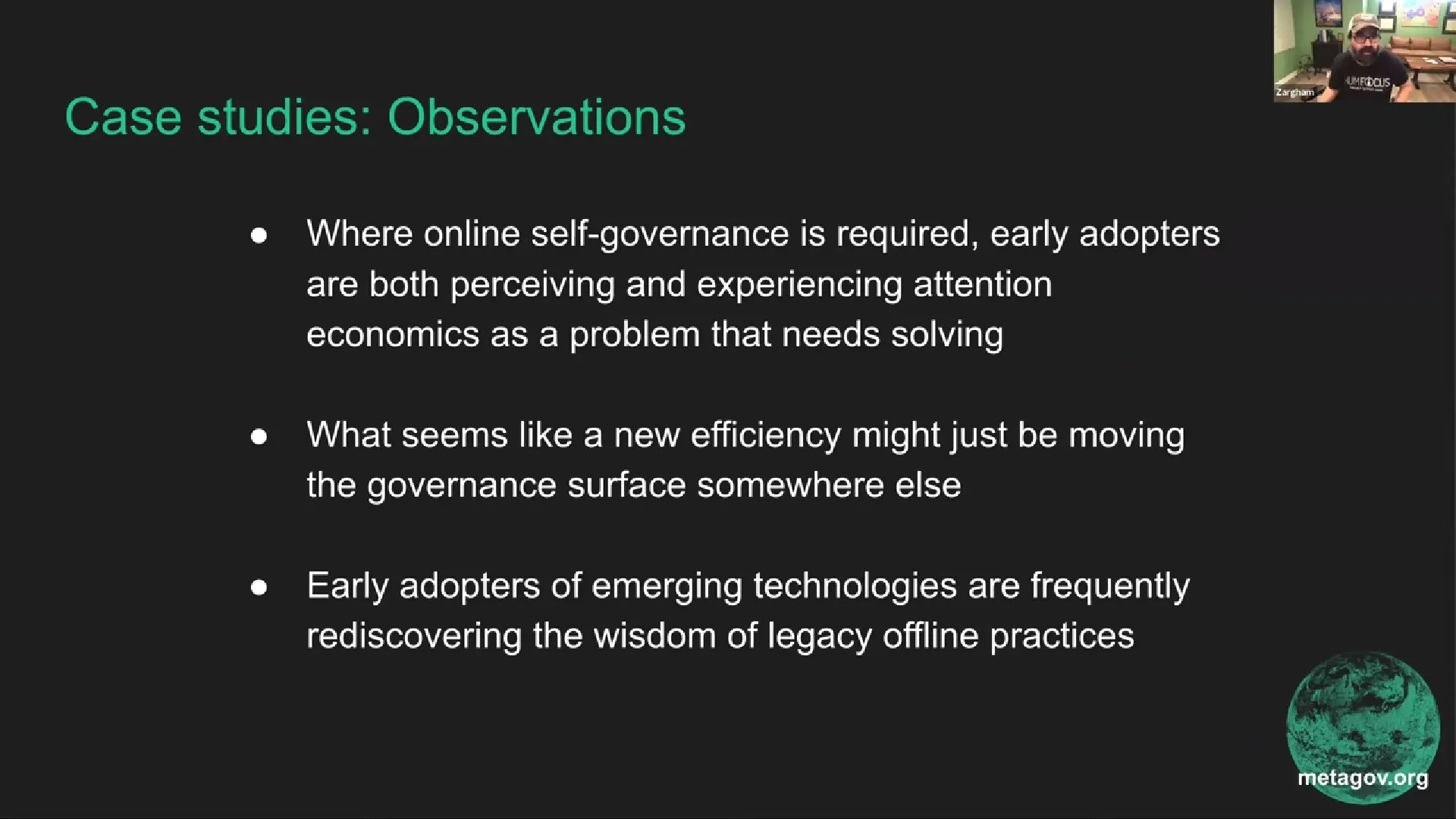 Zargham: And I invite everyone to pick two or three things in their life to really commit to being part of self-governance, but then let yourself off the hook for everything else. If everybody picks a few things and chooses to give attention to governance, it is very generative. Doing a good job is a lot of work.